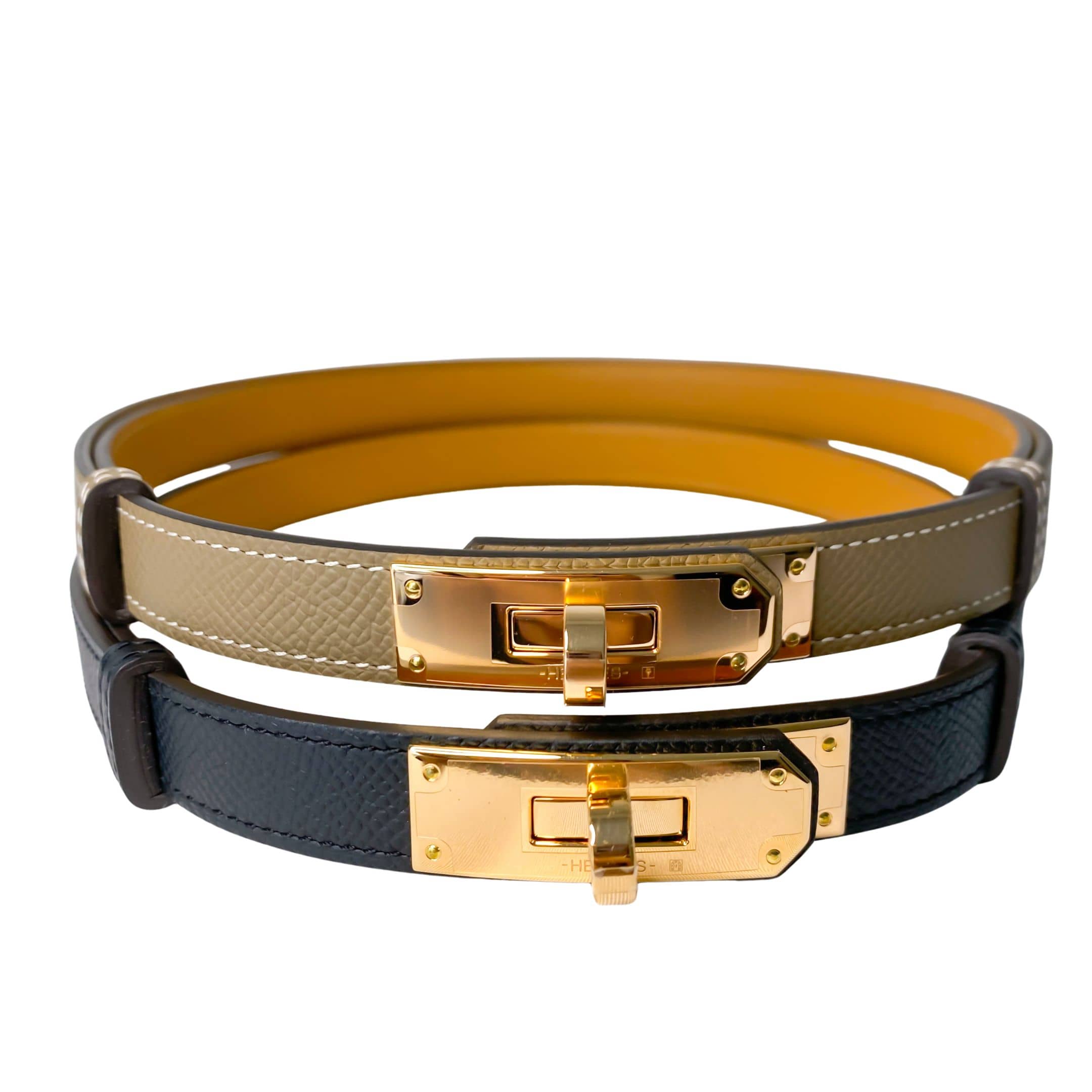 The Hermès Kelly belt in black with rose gold hardware is a refined statement accessory inspired by the iconic Hermès Kelly bag. Crafted in smooth leather with a sleek adjustable design, this timeless Hermès belt is finished with the signature Kelly turn-lock buckle in luminous rose gold. The classic black hue ensures effortless styling, while the elegant hardware adds a touch of modern femininity. Whether paired with tailored trousers, cinched over a dress, or styled with denim, the Hermès Kelly belt elevates every look with understated Parisian sophistication.