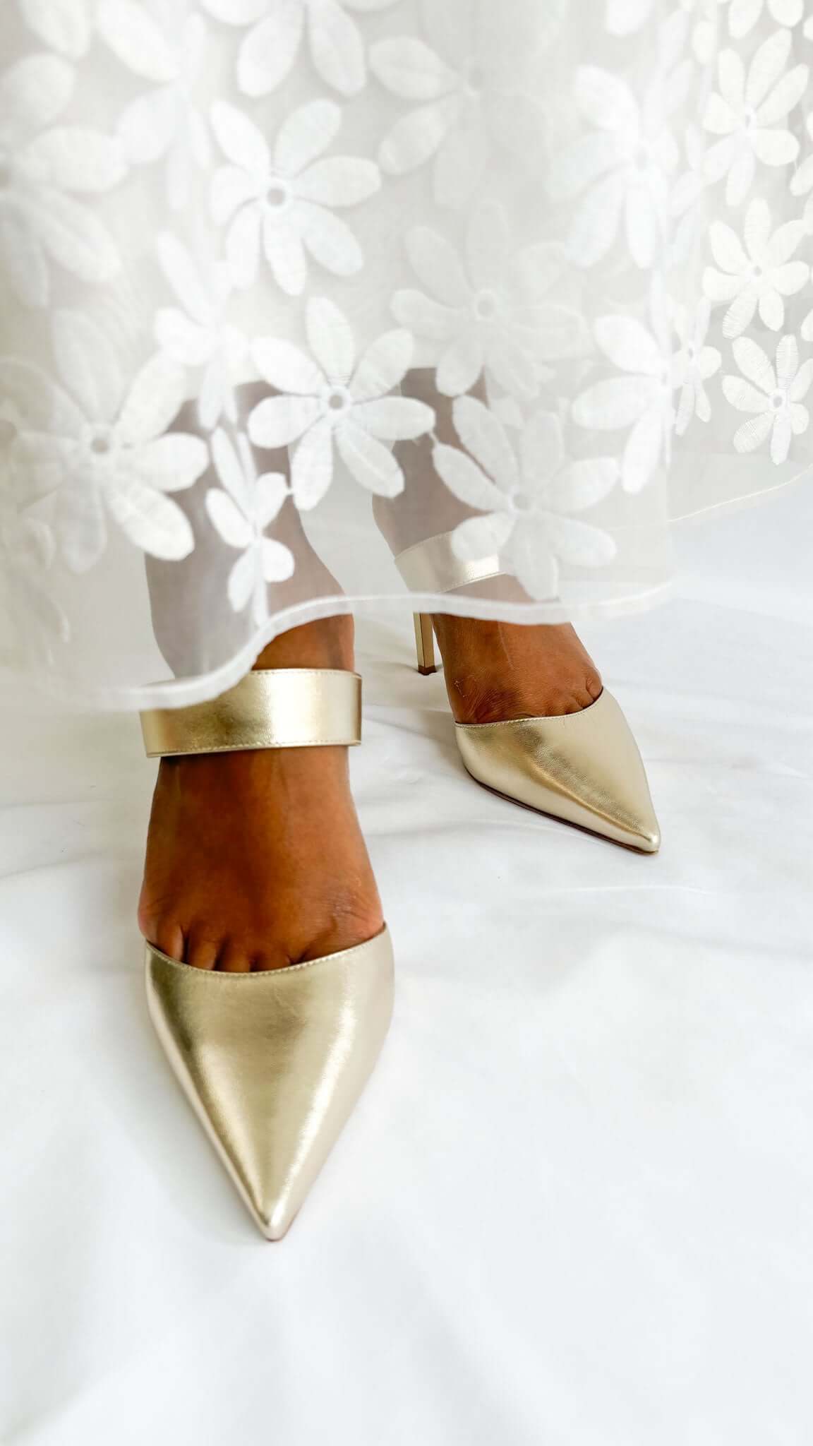 The shimmering gold finish adds a luminous touch, instantly elevating any look with a sense of occasion-ready sophistication. Designed with clean lines and a flattering shape, the Cheri 85 elongates the leg while maintaining a polished, feminine aesthetic.