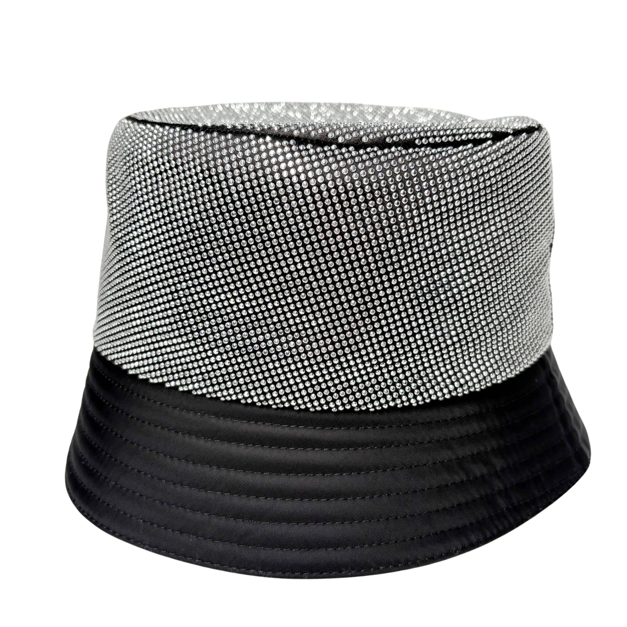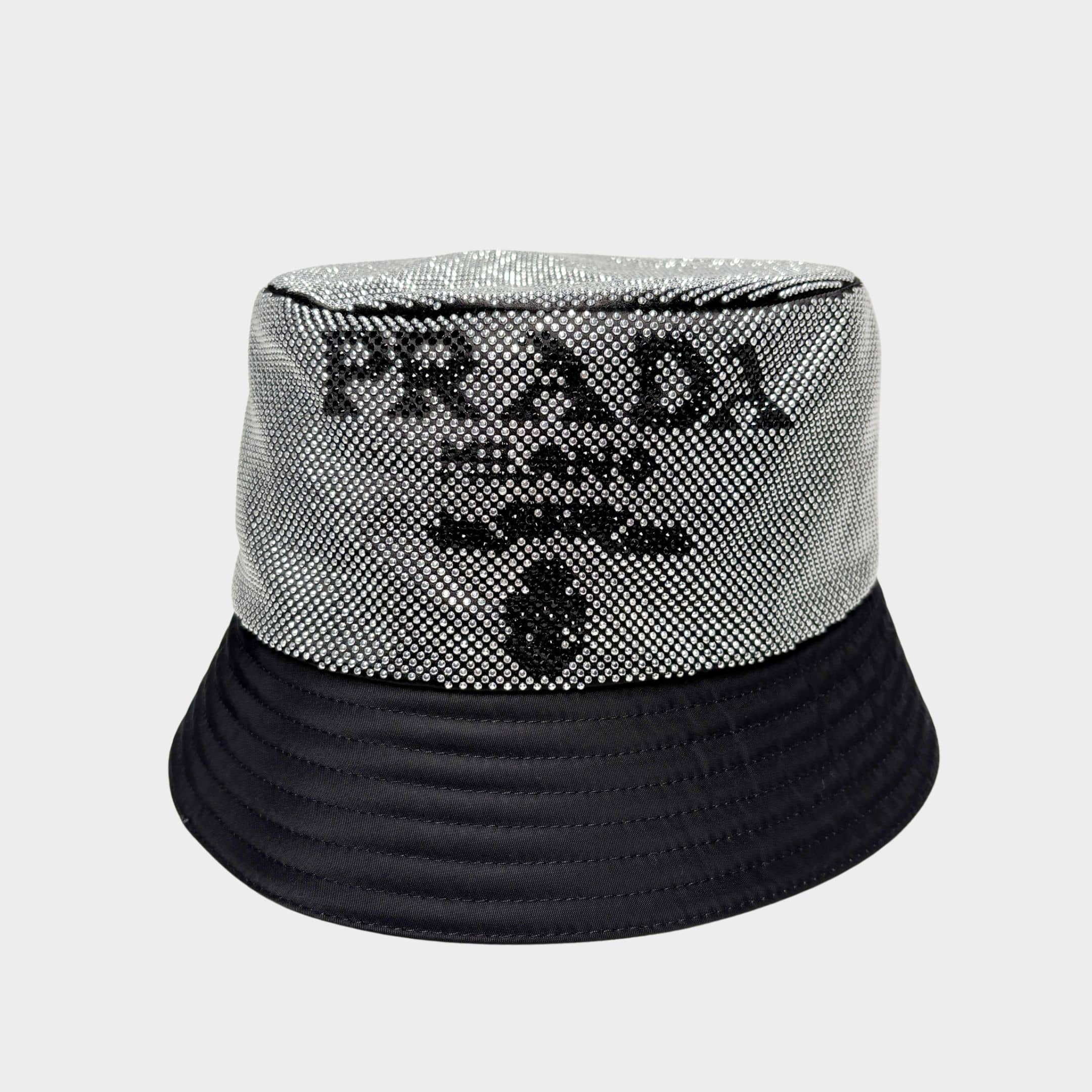 Shine in style with the Prada Crystal-Embellished Nylon Bucket Hat. Crafted from durable nylon and adorned with sparkling crystals, this statement accessory combines Prada's iconic design with a touch of glamour. Perfect for adding a bold, fashionable edge to any outfit, this bucket hat is both trendy and luxurious.