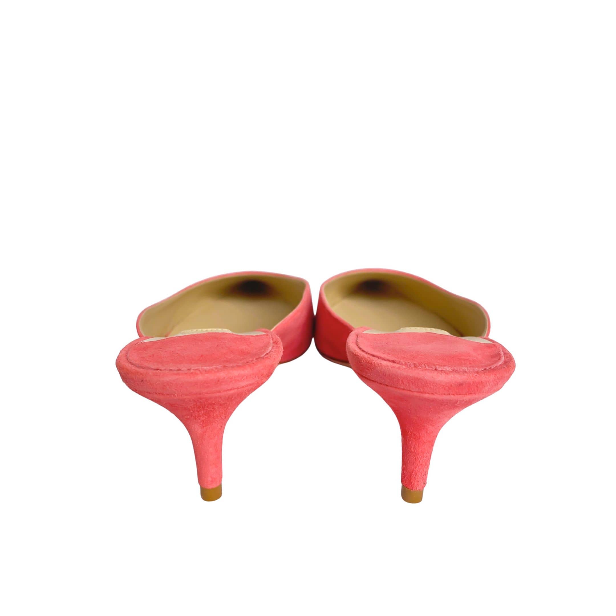 The Jimmy Choo Dovey 50 Pink Suede Mules are the perfect blend of modern femininity and timeless elegance. Crafted in Italy from soft, velvety suede, these kitten-heel mules offer effortless sophistication with every step.