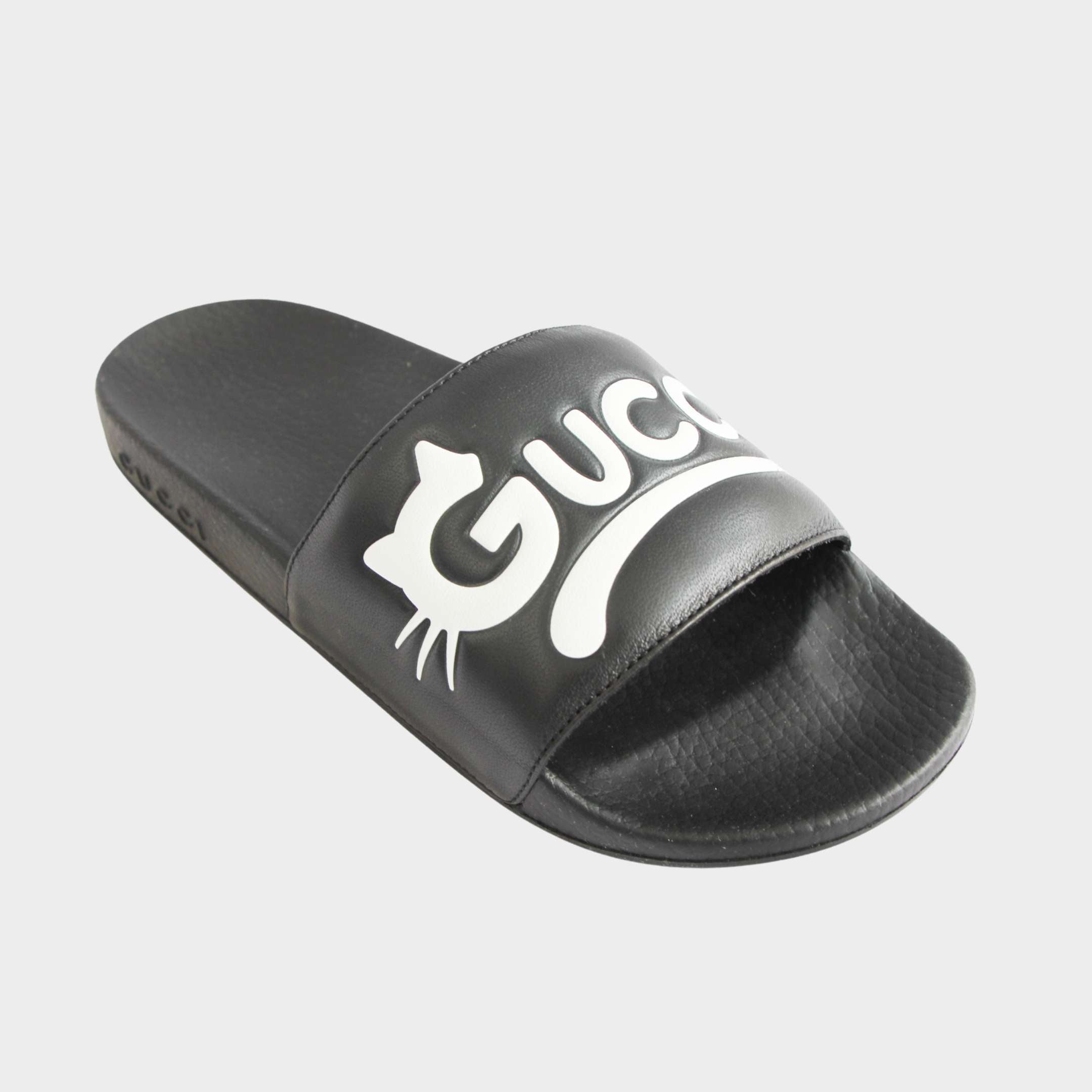 The Gucci Pursuit Cat Pool Slides are a bold reinterpretation of casual luxury. Made in Italy, these slides feature the signature feline motif embossed on the strap - a symbol of Gucci’s creative spirit and modern identity.