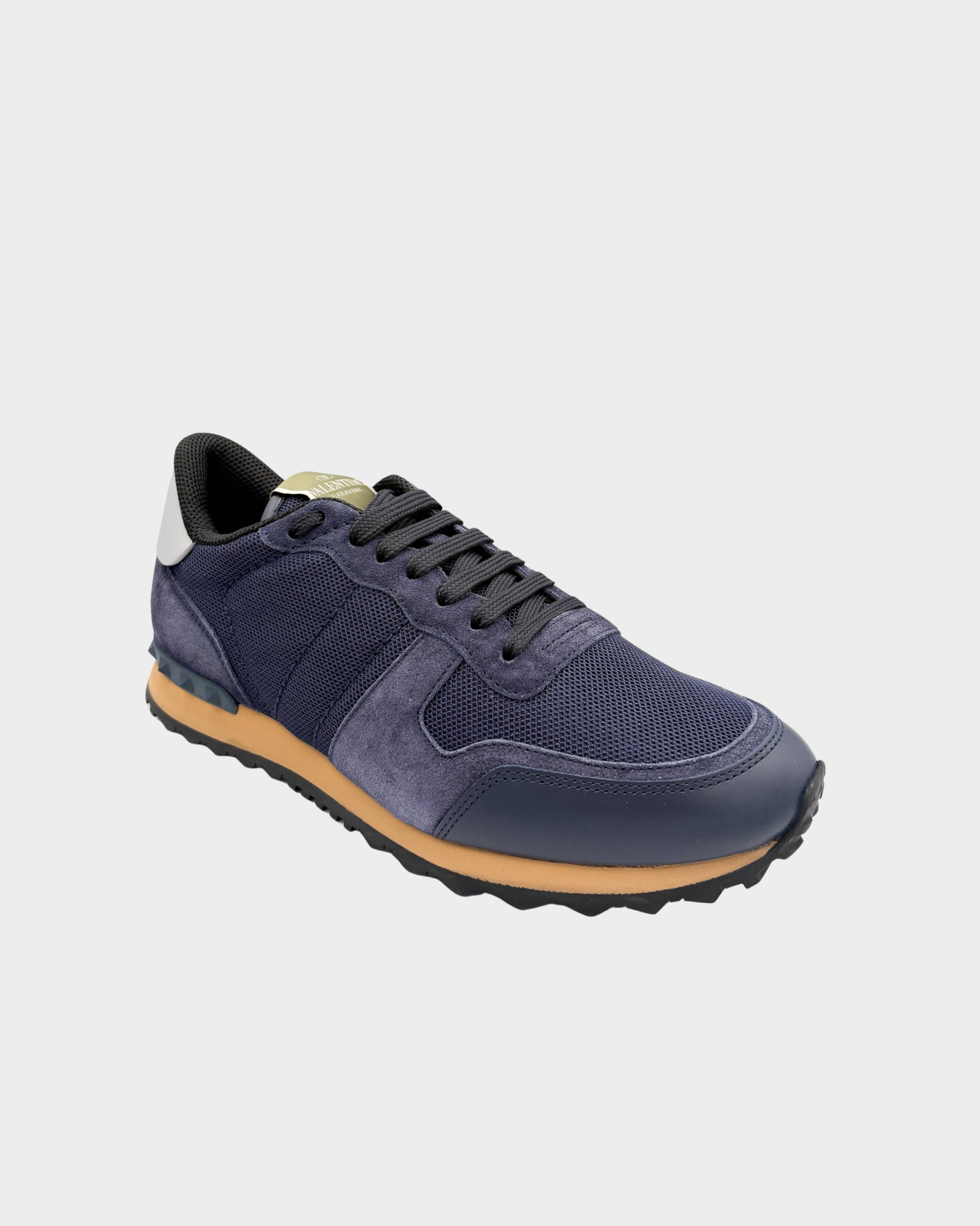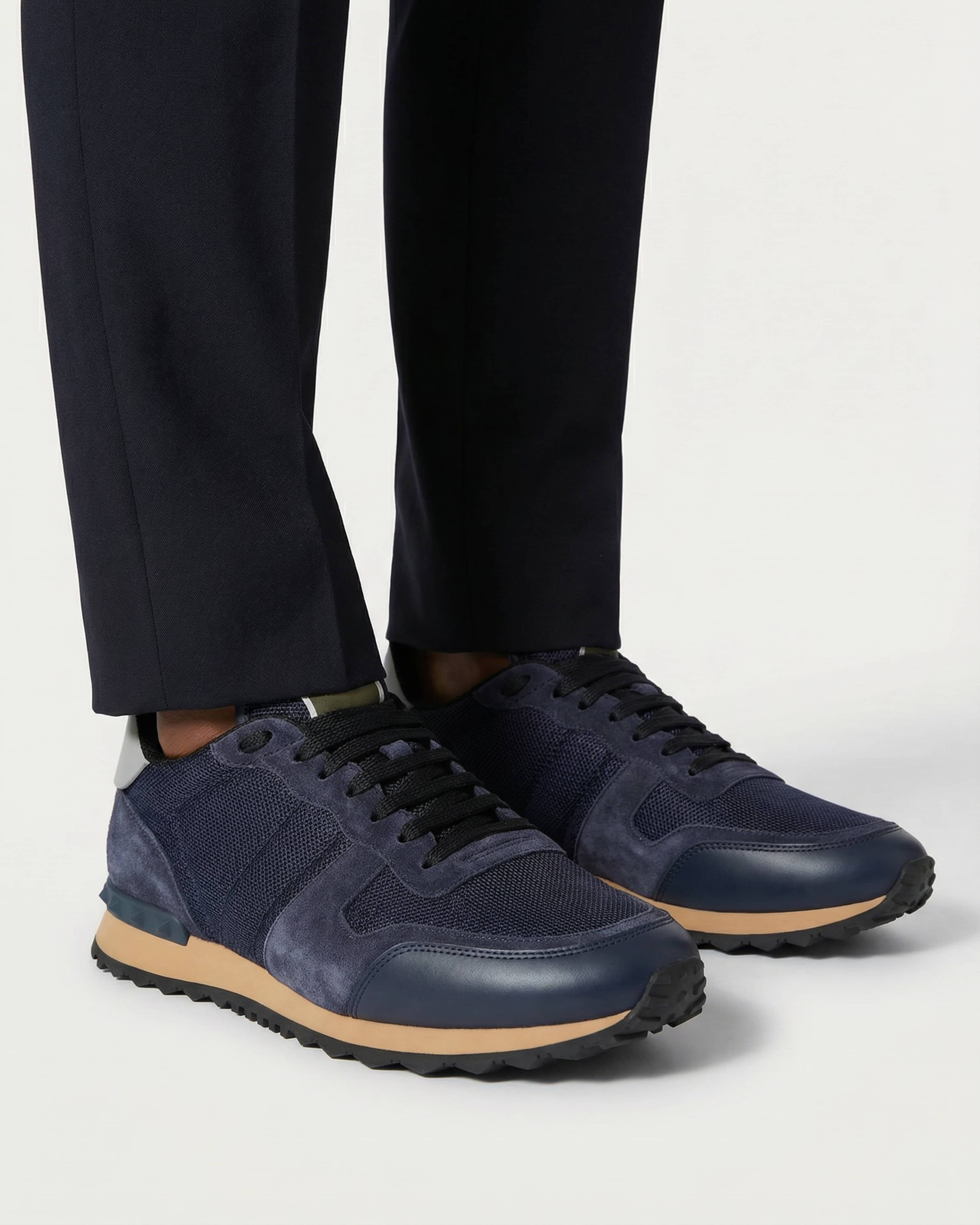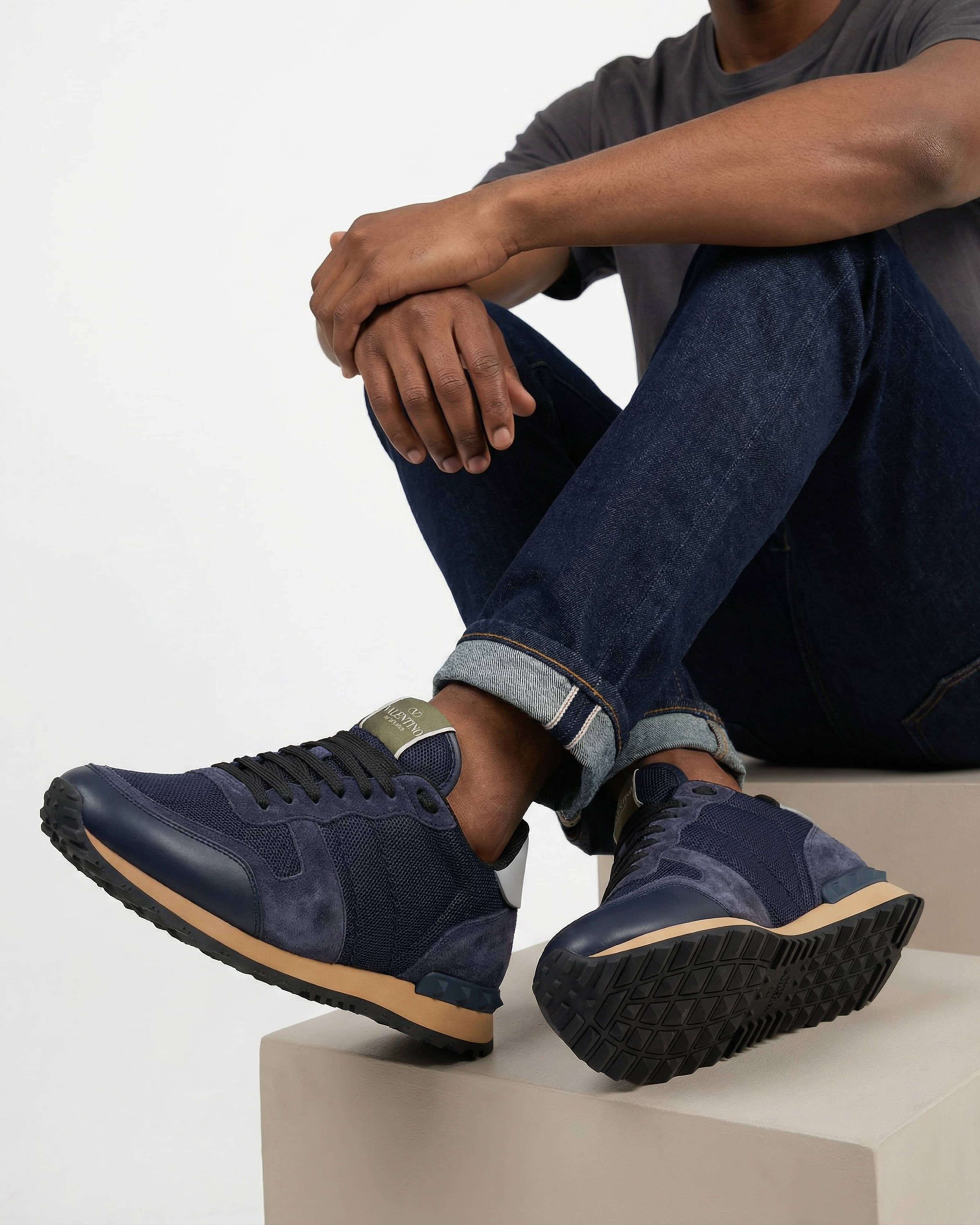 The deep Night and Marine colourway offers a sophisticated take on everyday luxury — versatile enough for casual styling yet elevated enough to complement refined off-duty looks. Finished with the house’s distinctive stud detailing at the heel, the Rockrunner delivers both comfort and unmistakable Valentino identity.